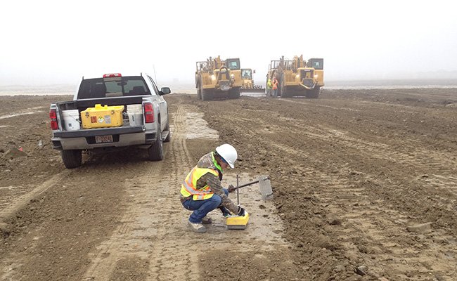 Executa ensaios para determinar parâmetros de resistência e de permeabilidade, como: compactação, CBR, limites de plasticidade e liquidez, granulometria por sedimentação, laboratório de asfalto ensaio marshall, teor de betume, ensaios em cimento e emulsões, dosagem marshall, ensaios de campo com frasco de areia, cilindro de cravação e viga de benckelman. Acompanha a massa asfáltica, inspecionando a temperatura e compactação, extração de corpos de prova asfáltico e controle de terraplanagem.